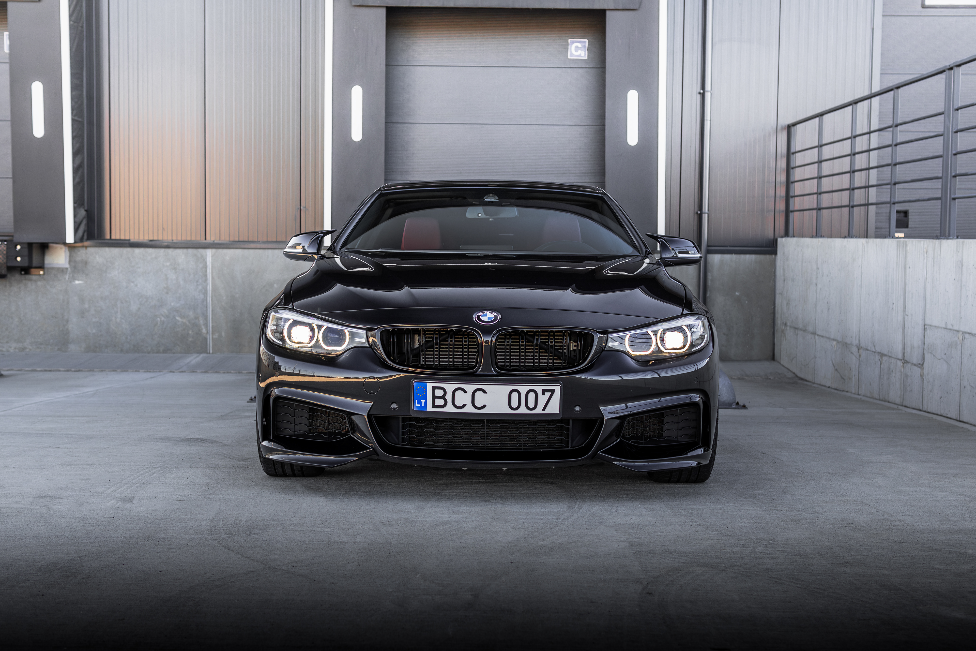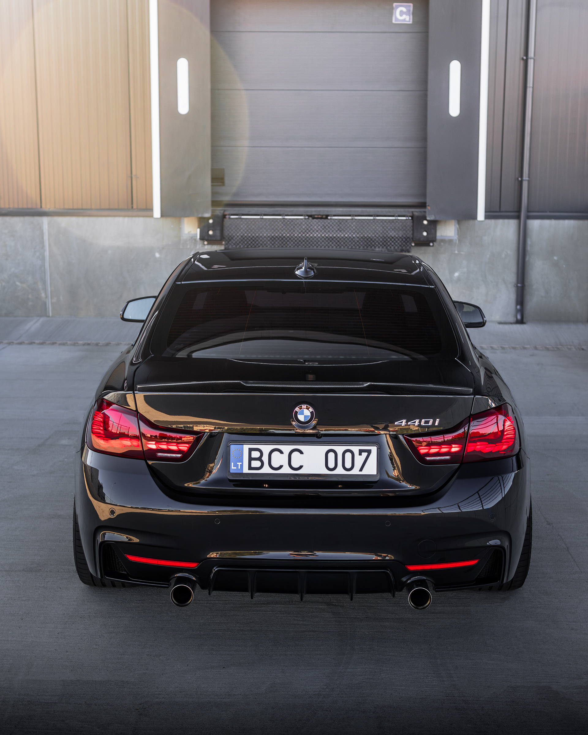 Photos of client's BMW 440i, shot next to a newly built warehouse