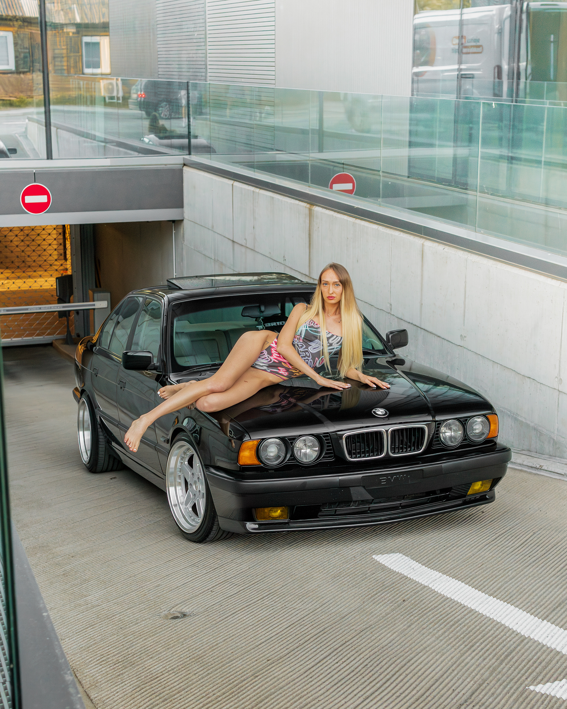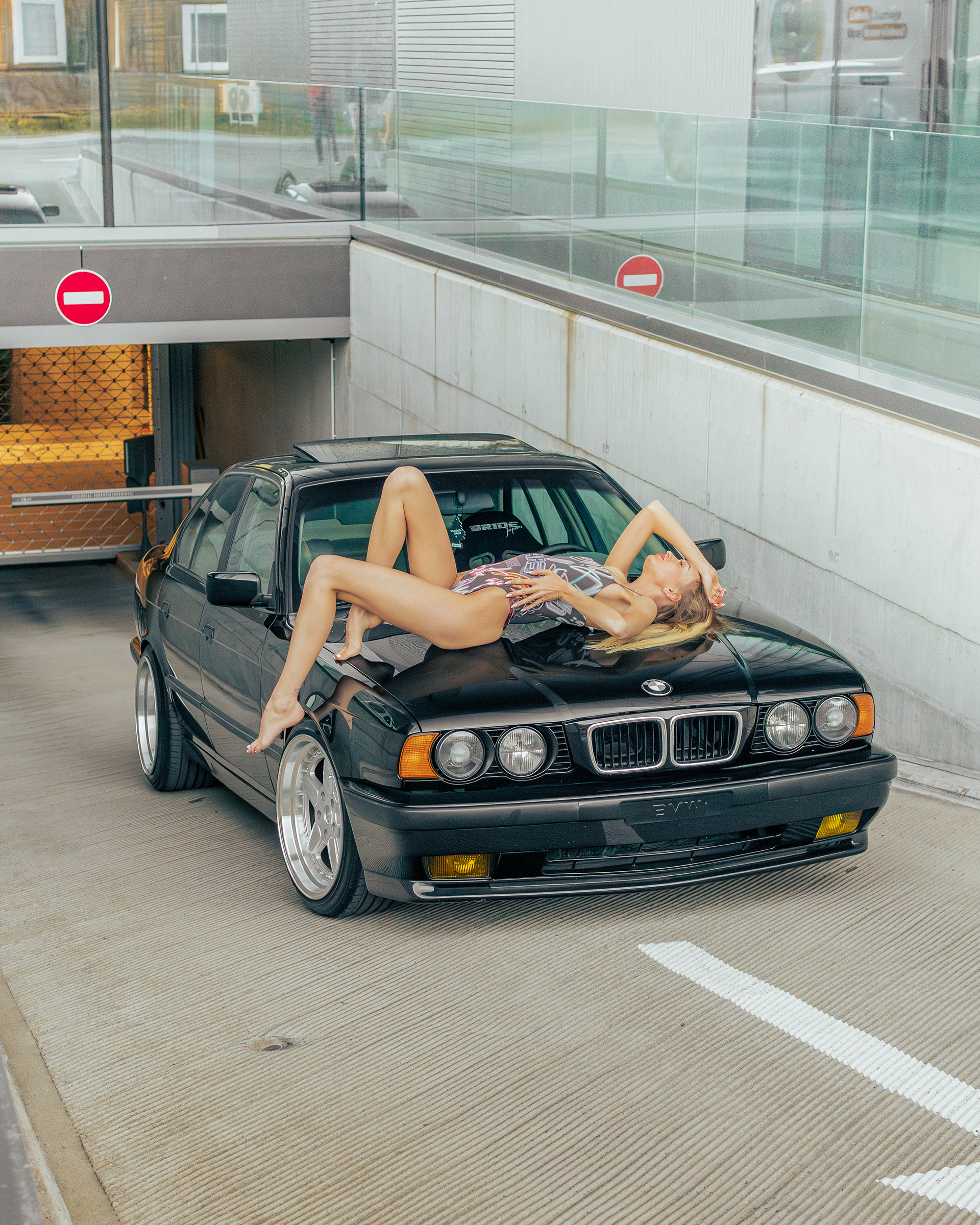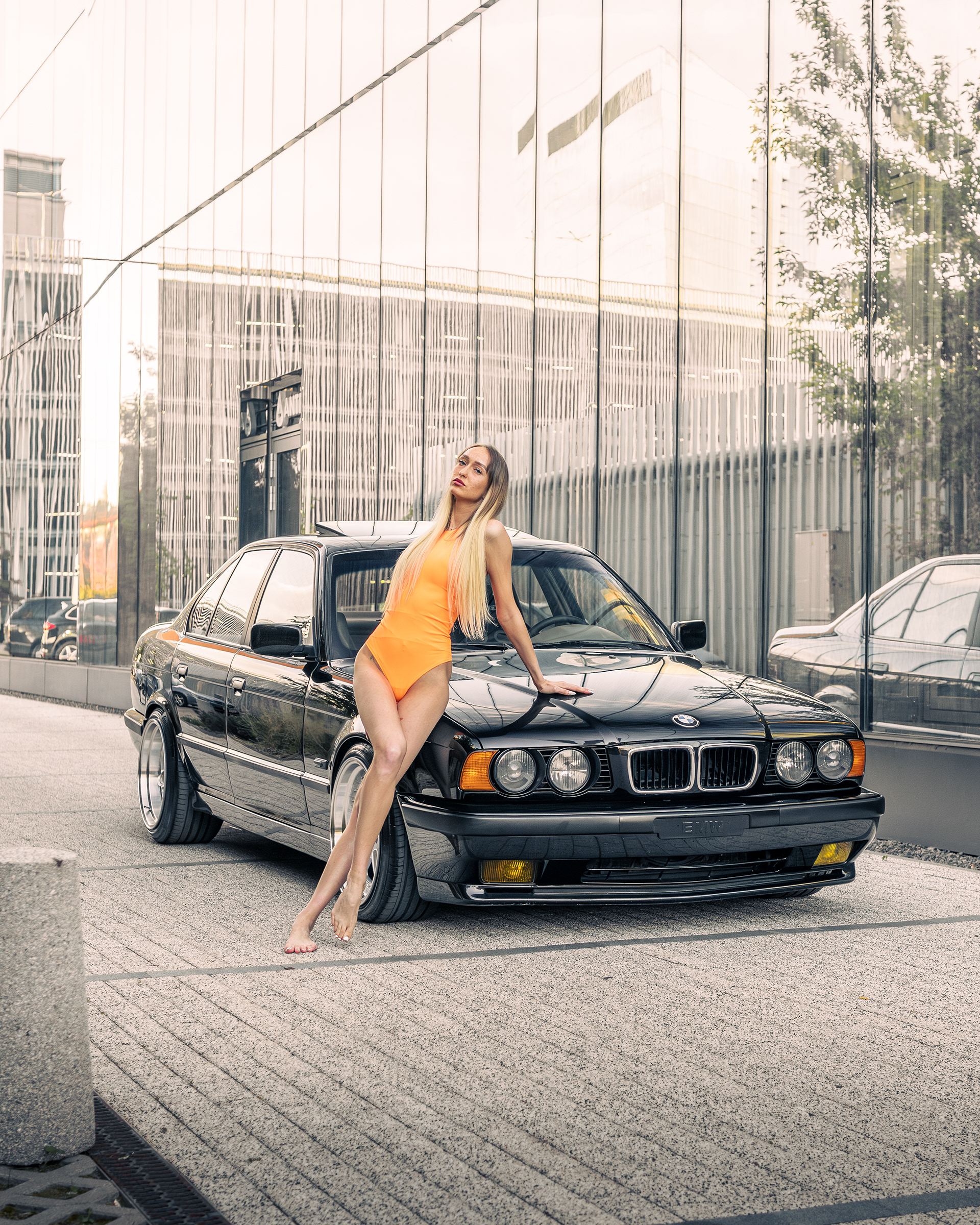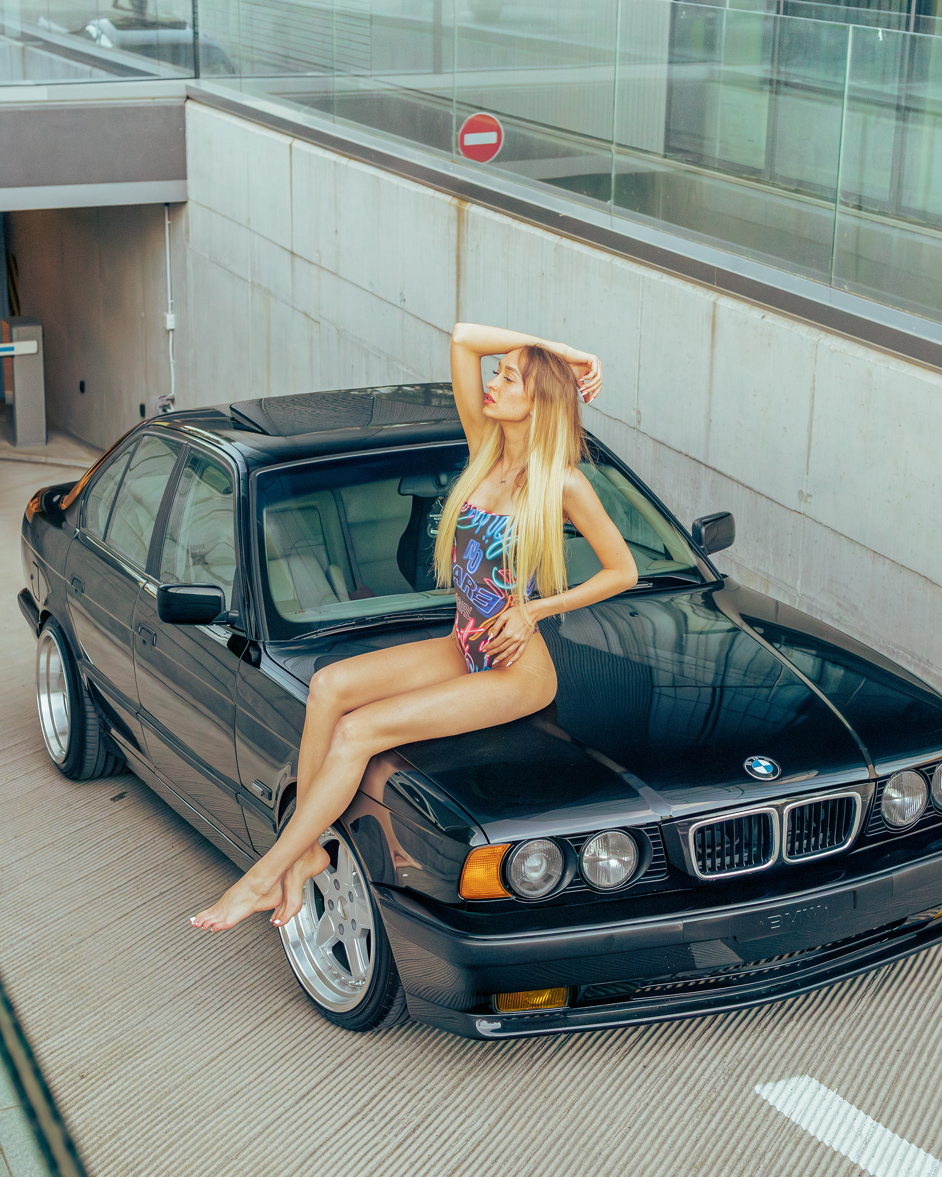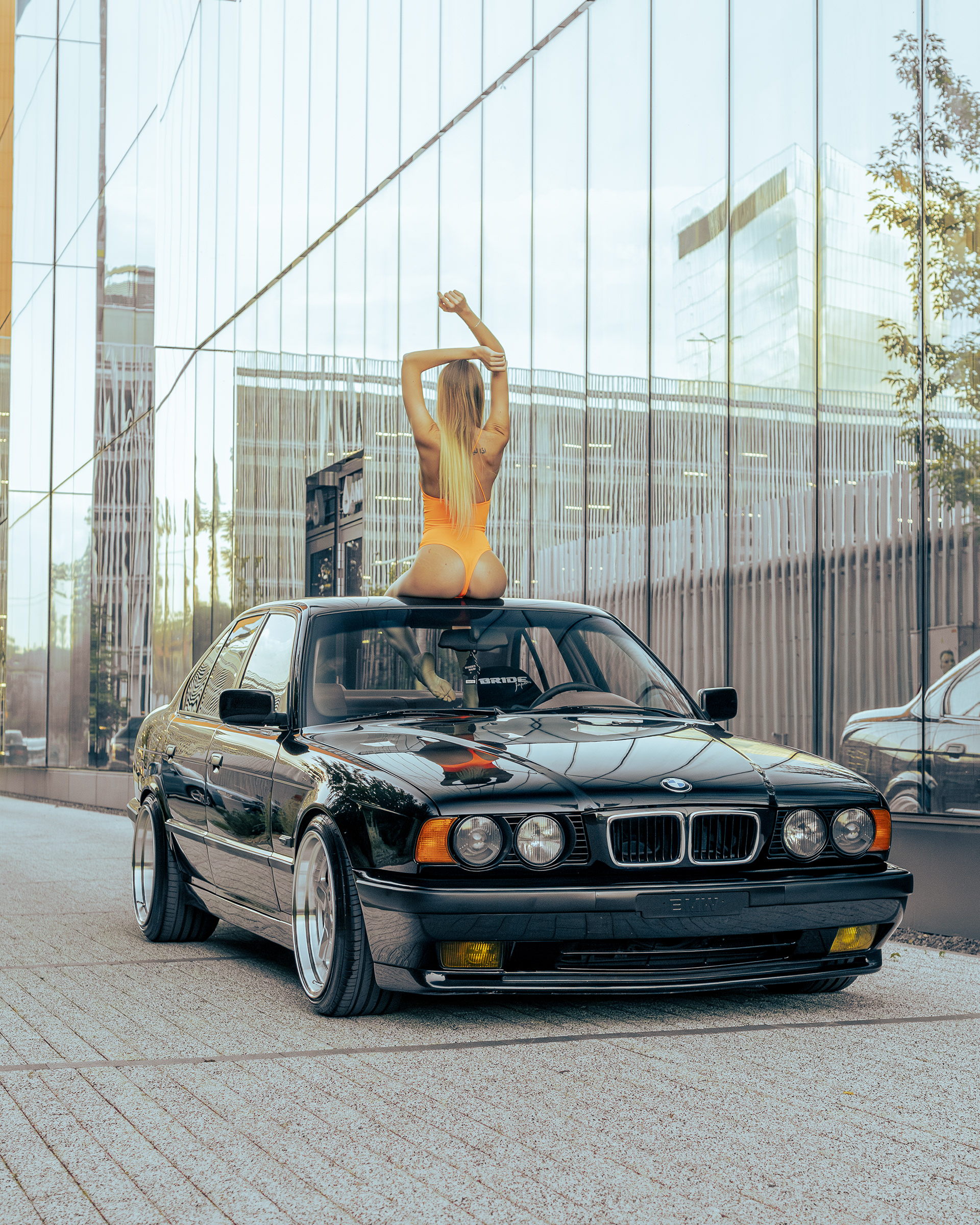 Photoshoot for client's BMW E34 photographed with a model (@ainyttee)