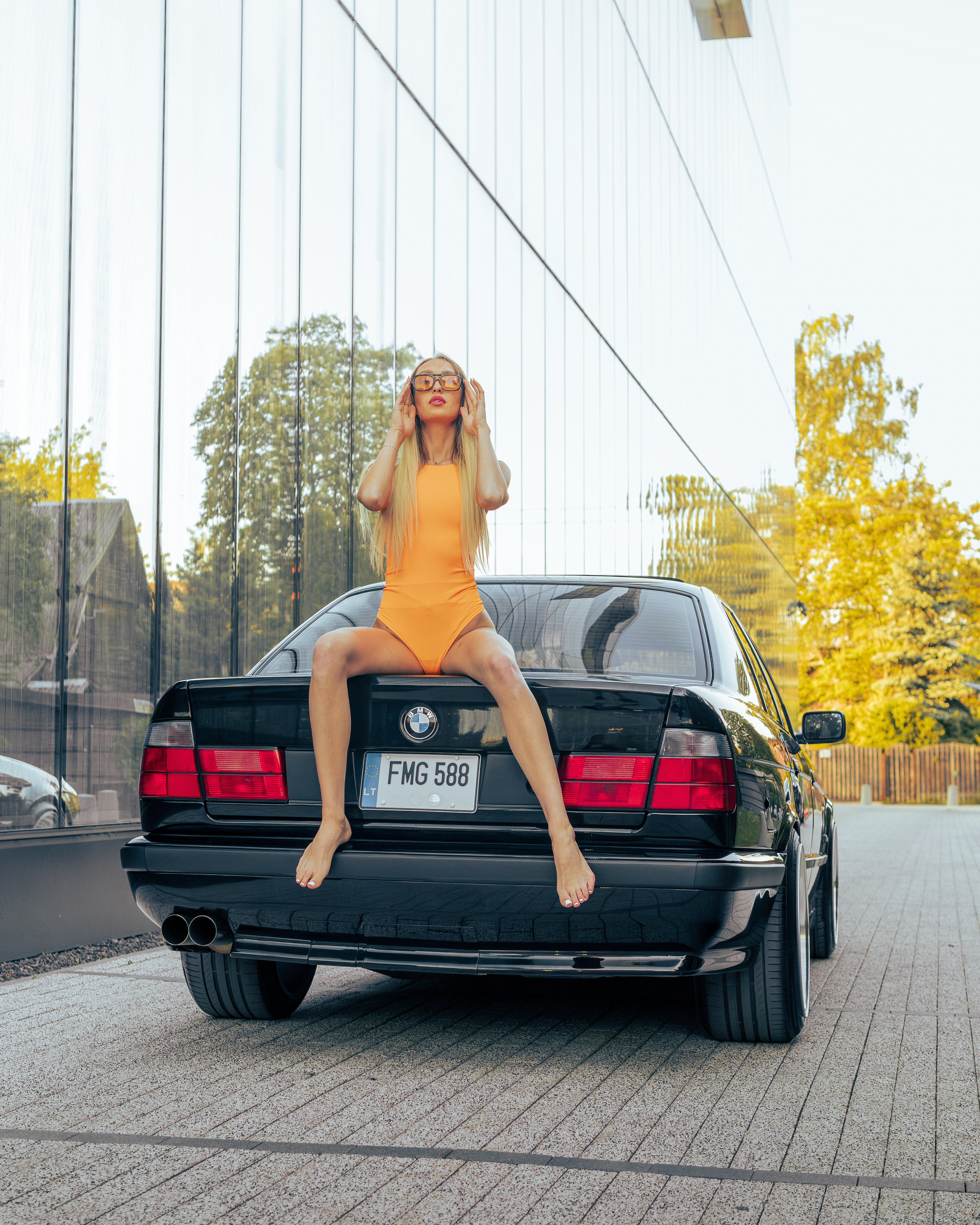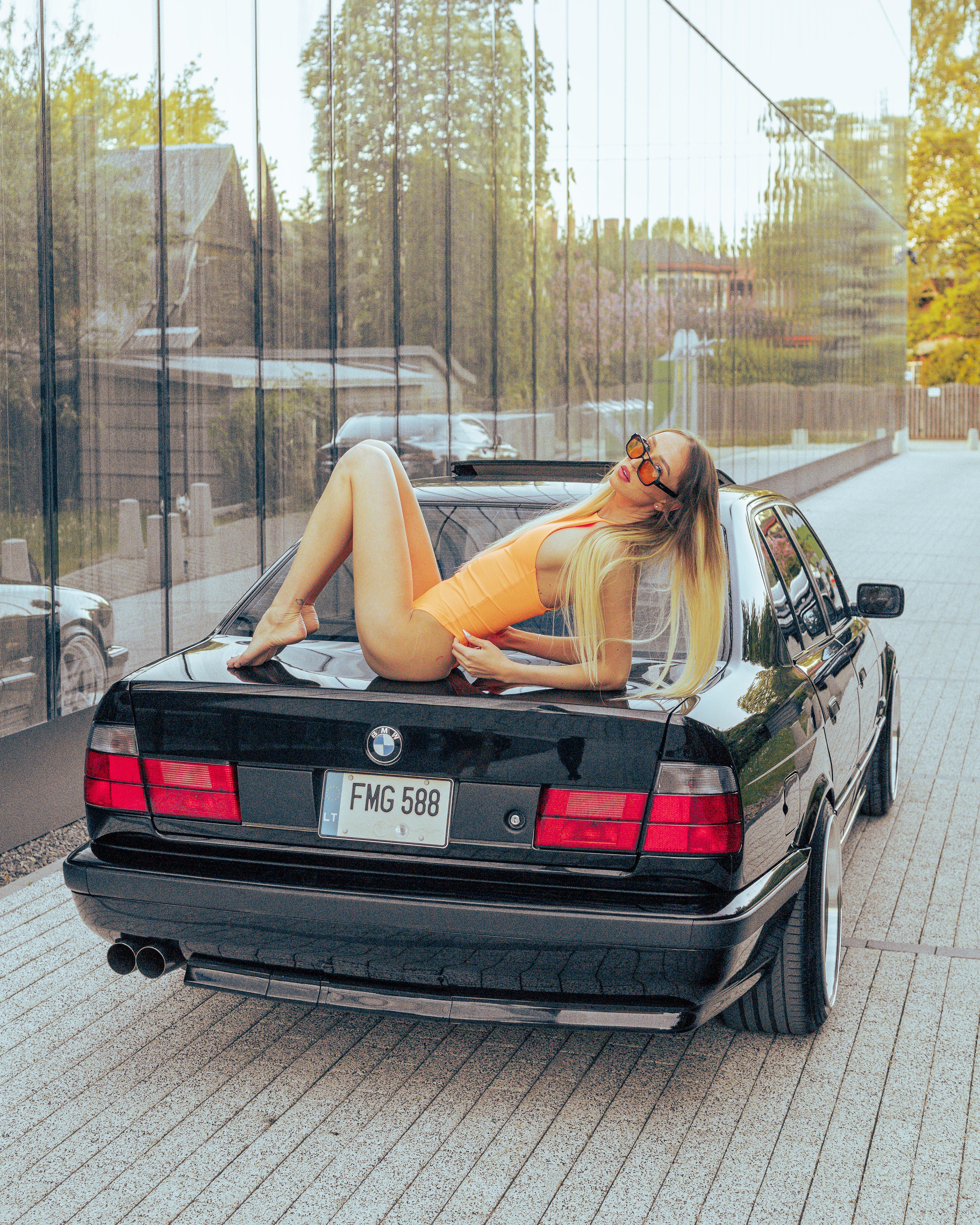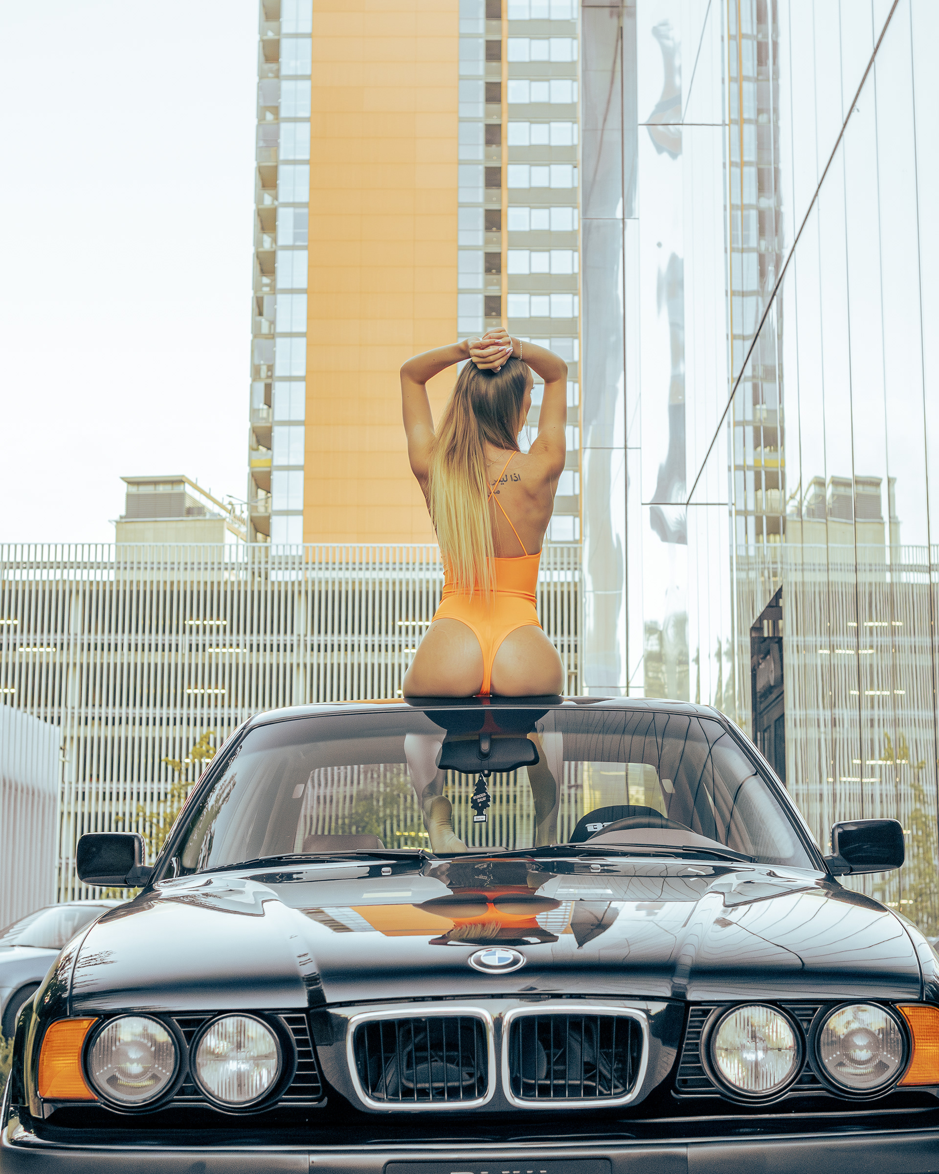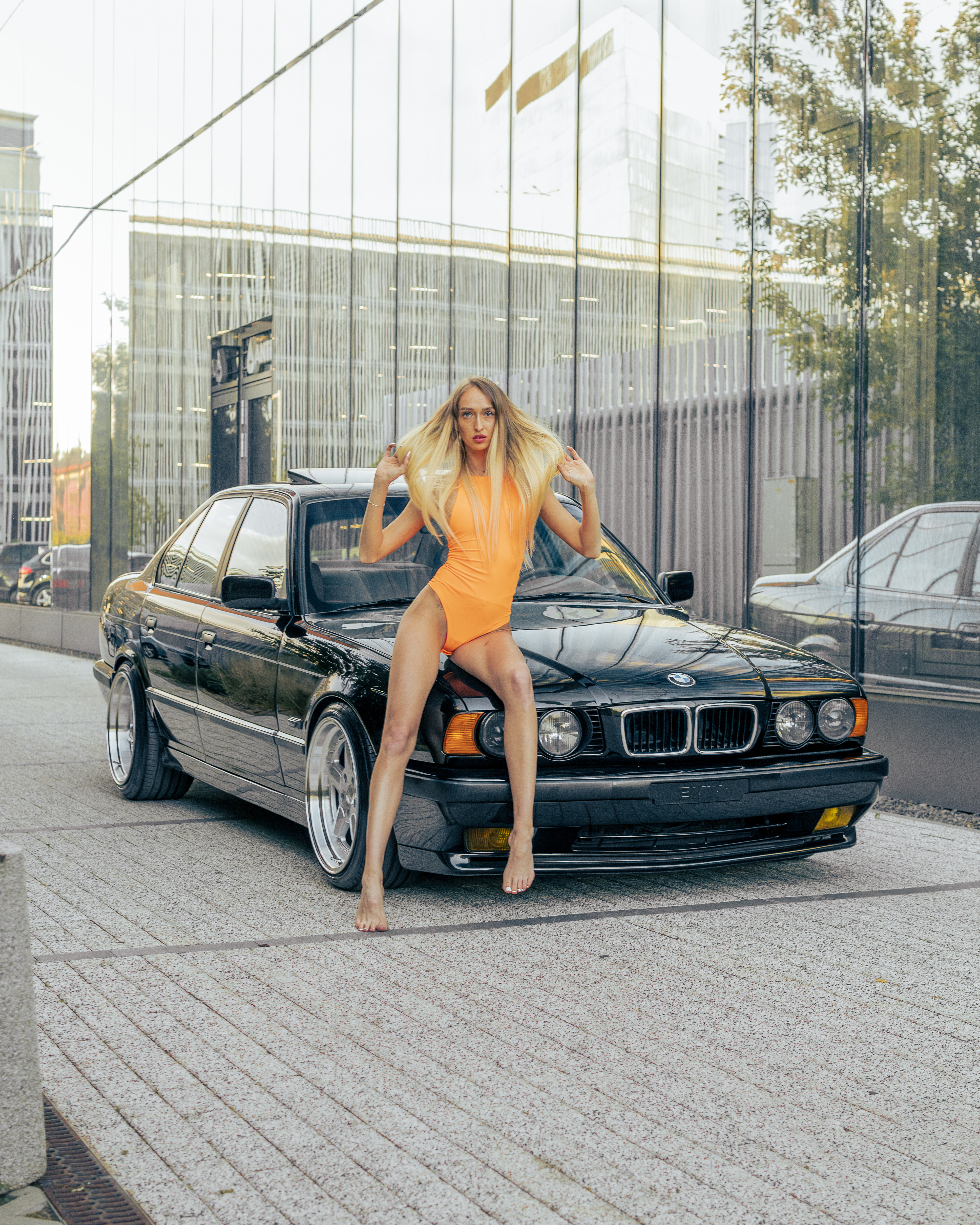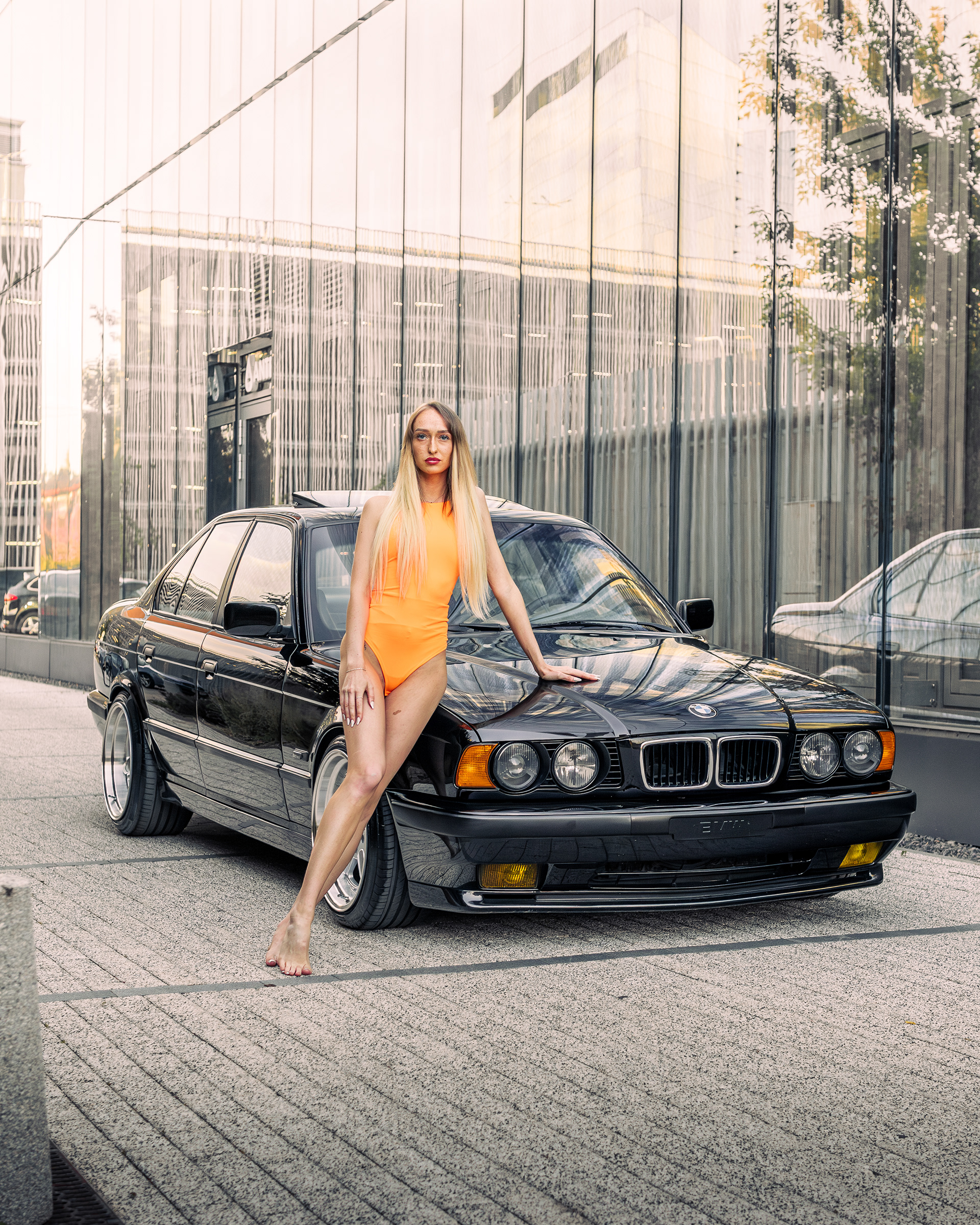 Photoshoot for client's BMW E34 photographed with a model (@ainyttee)