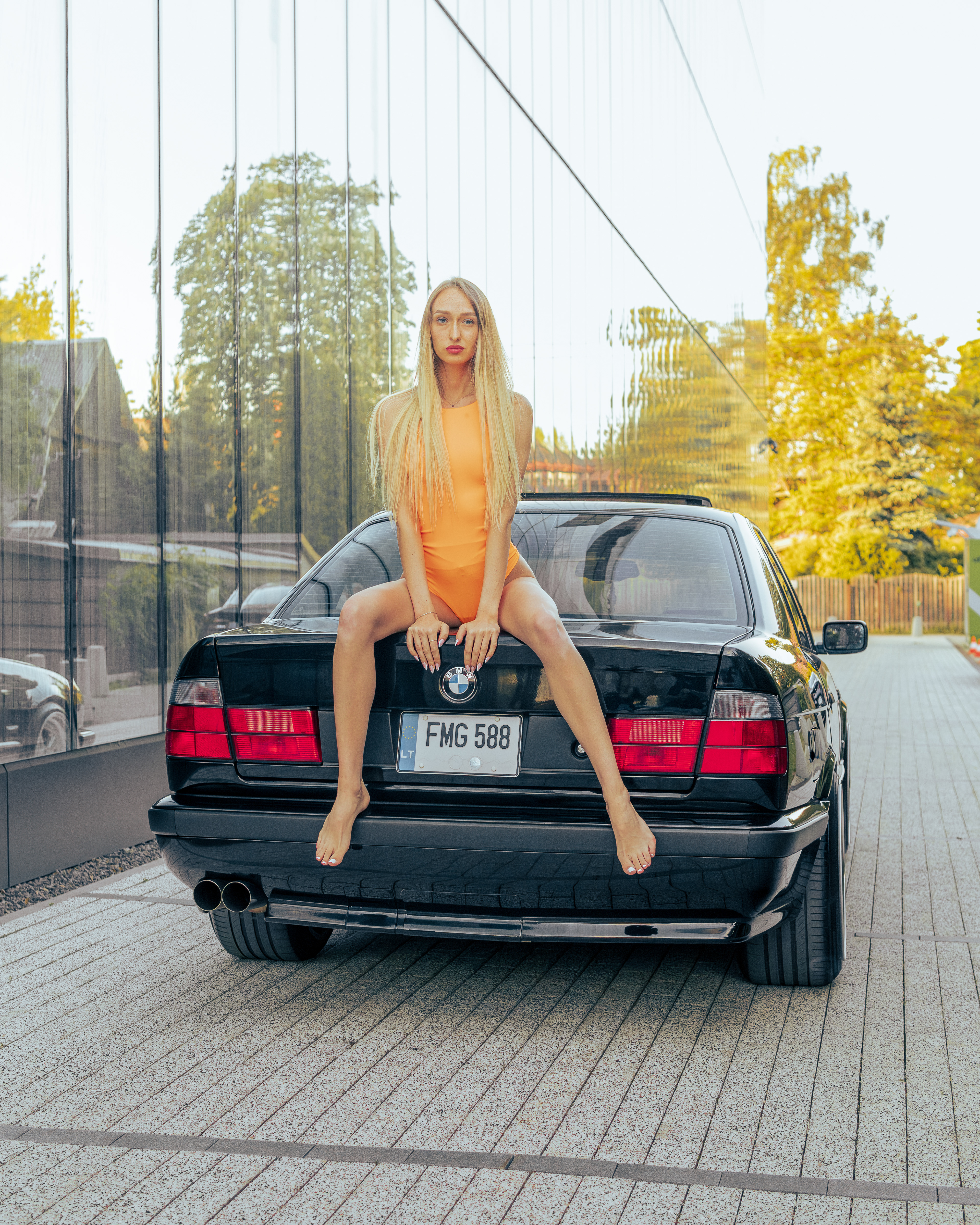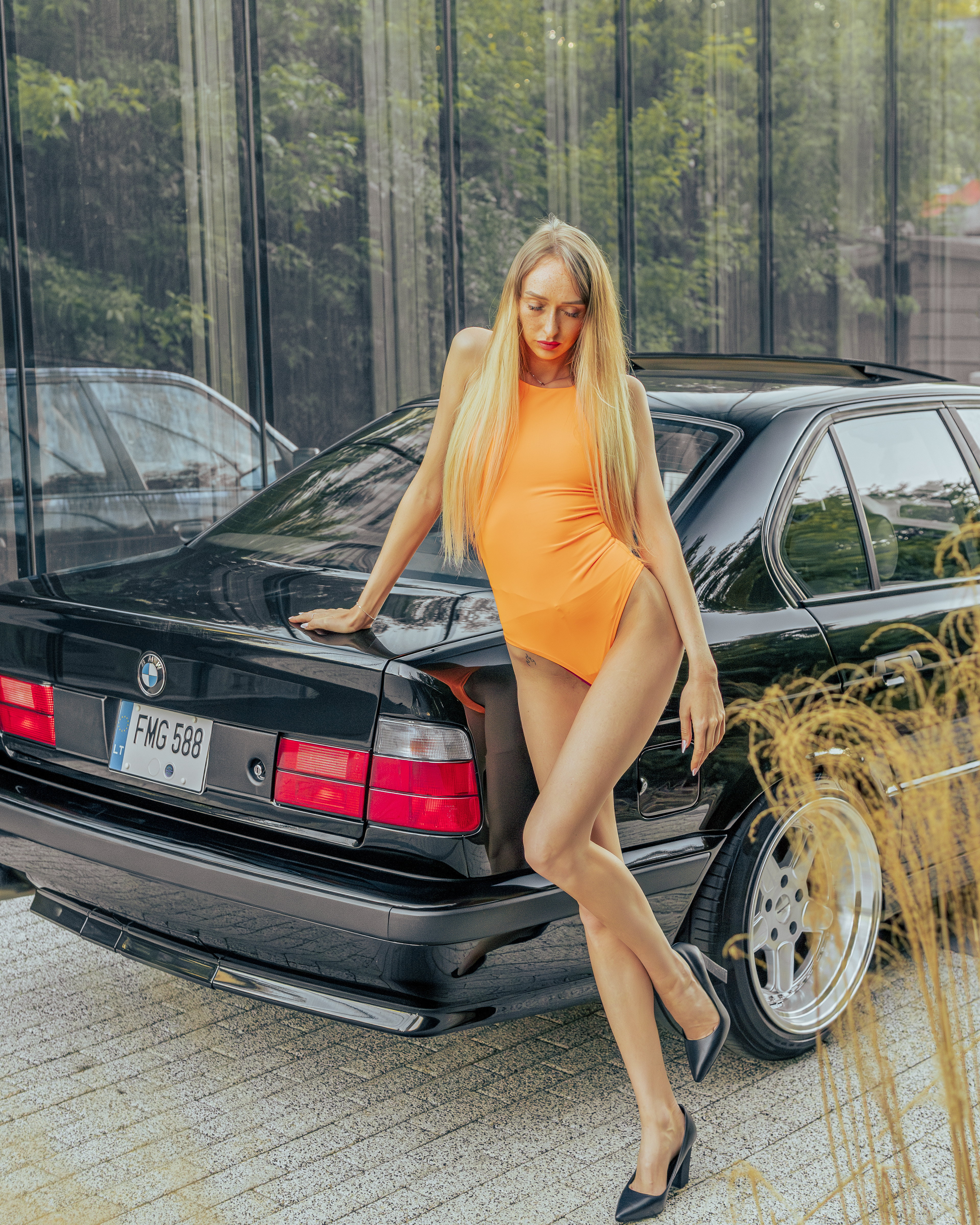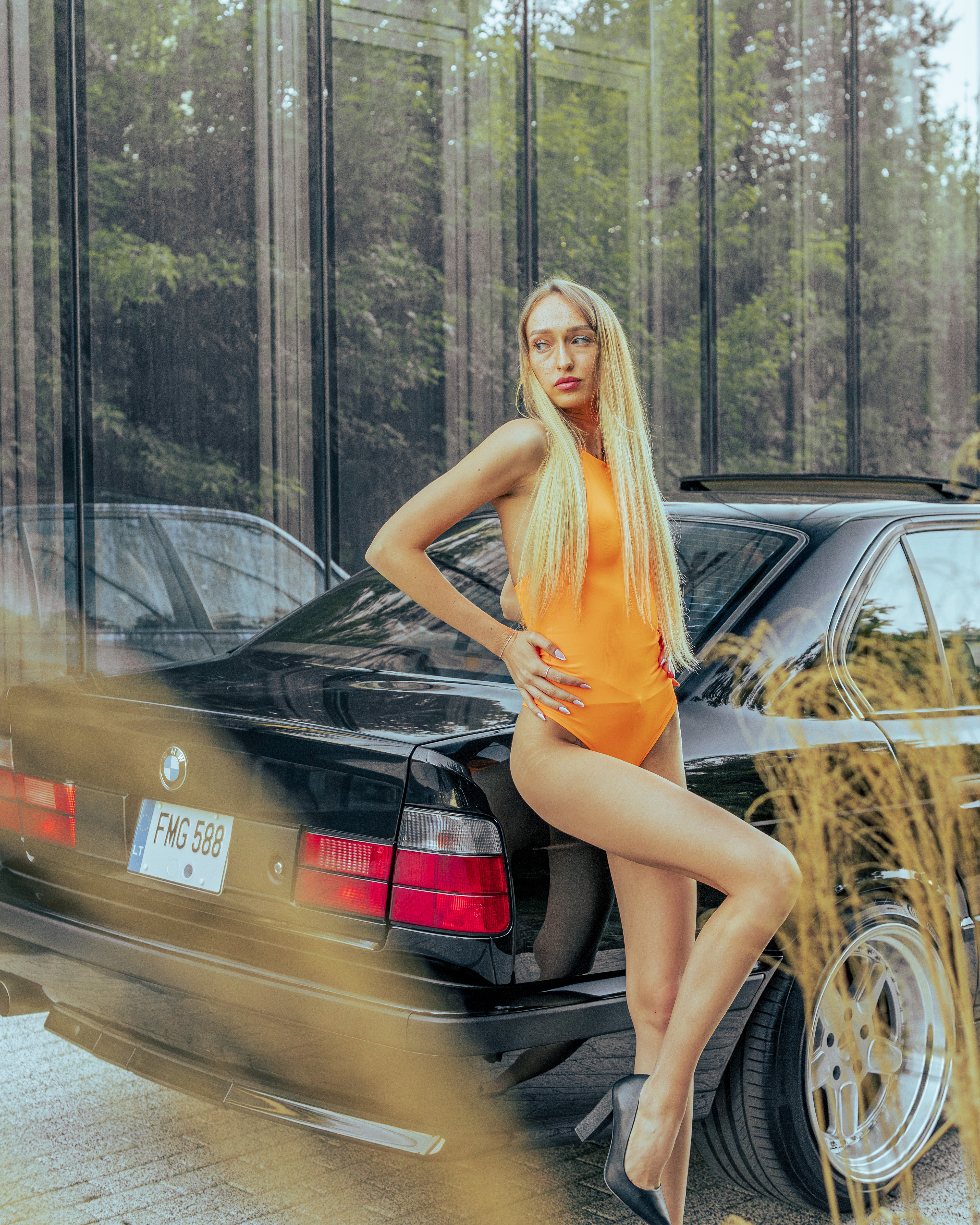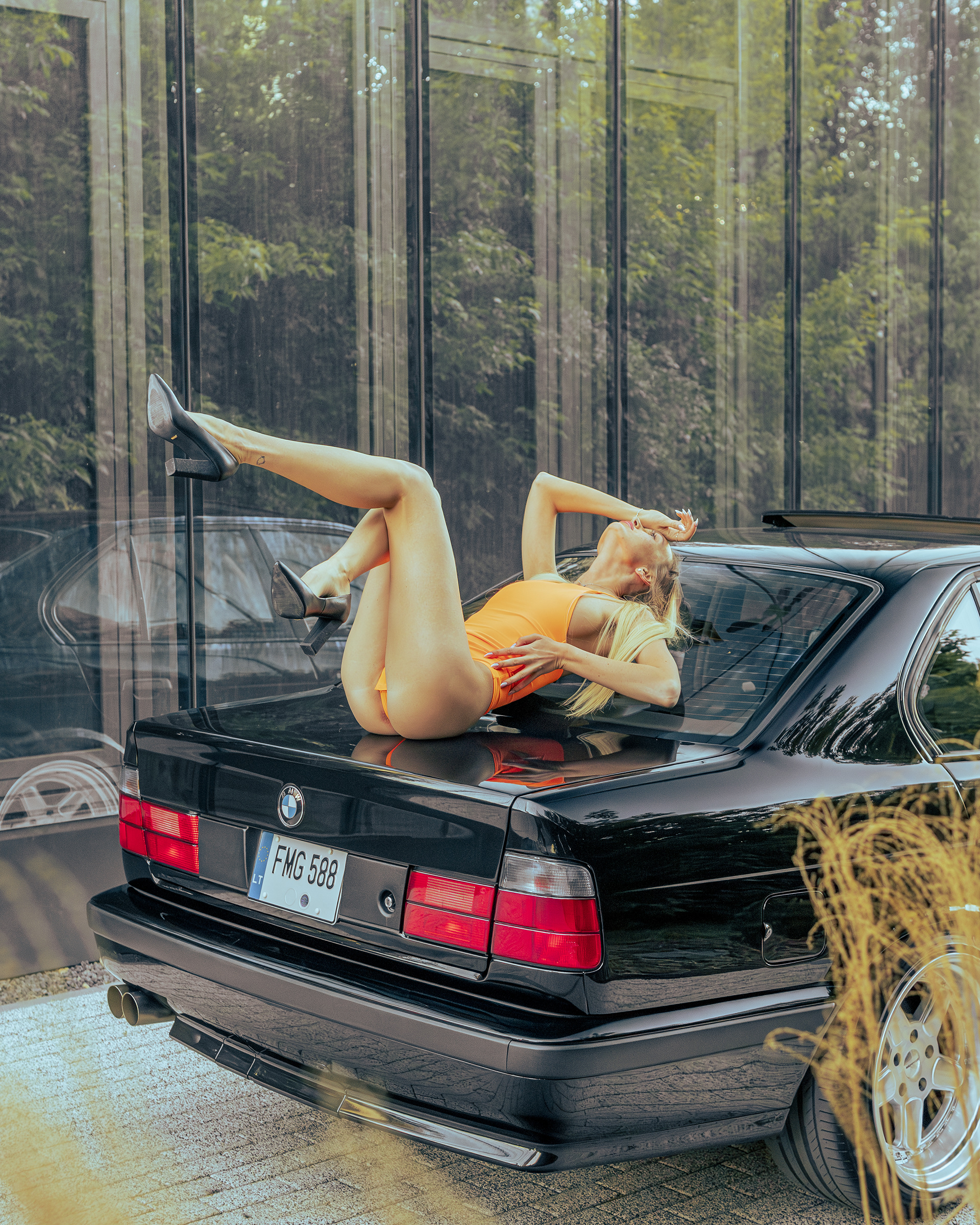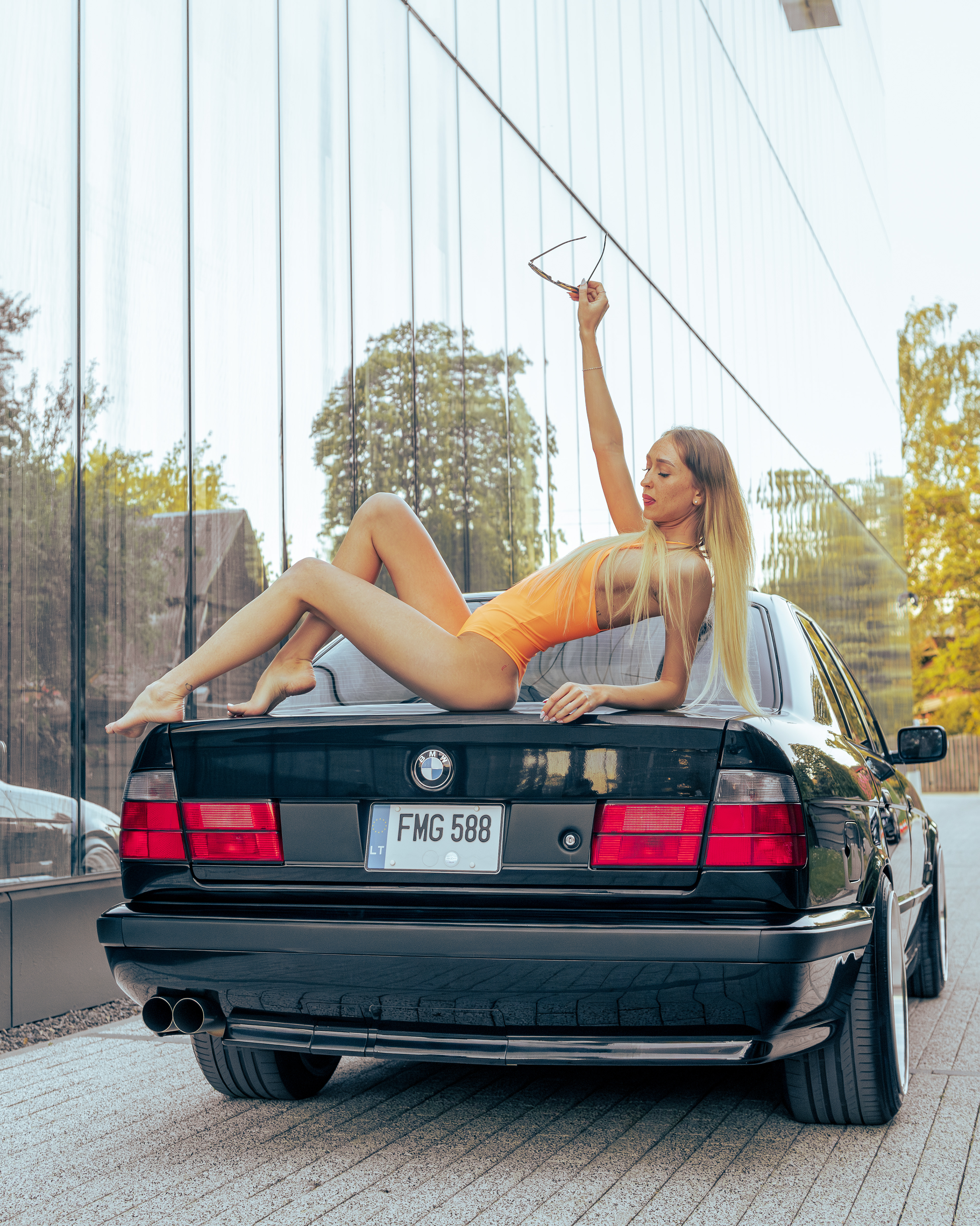 Photoshoot for client's BMW E34 photographed with a model (@ainyttee)