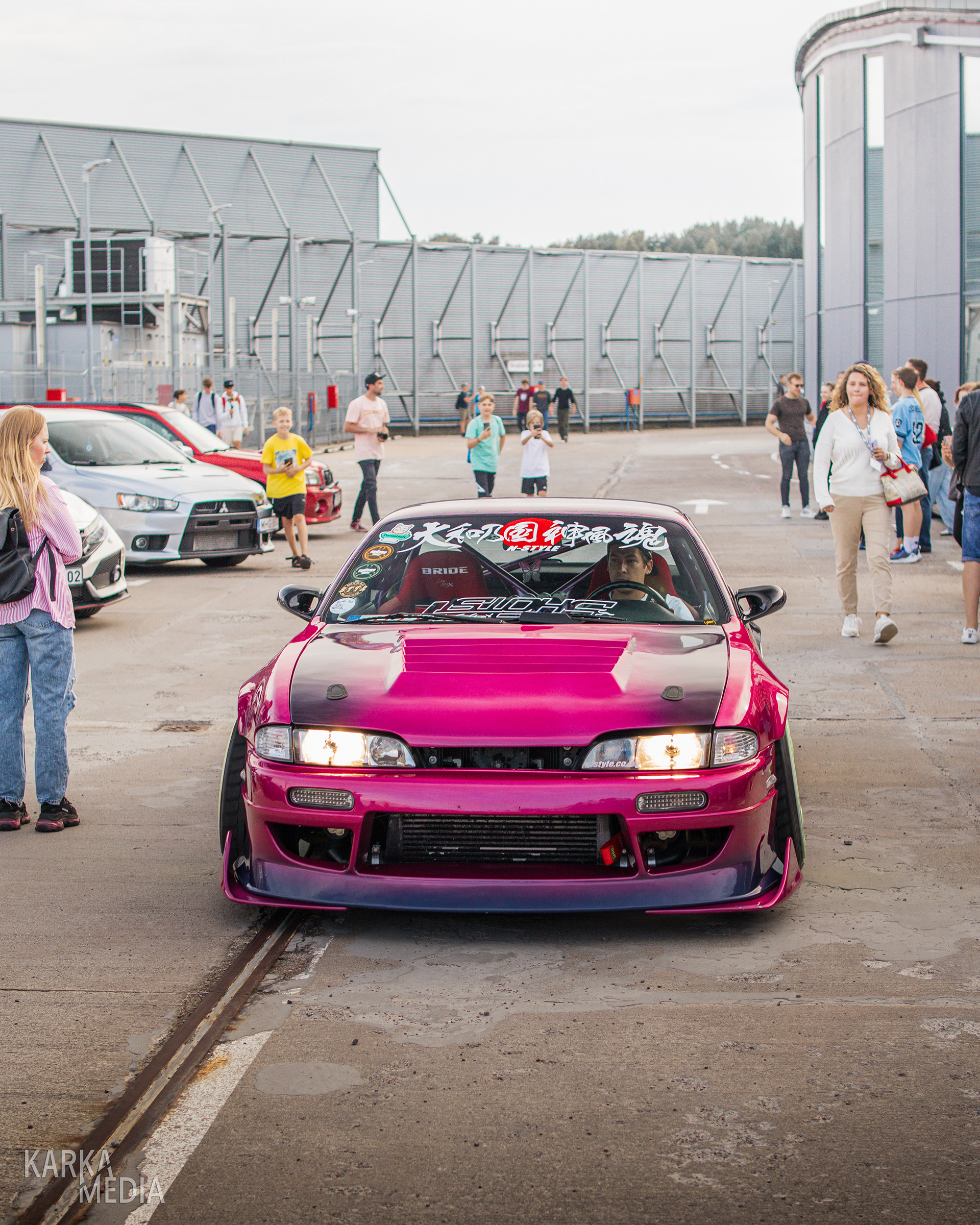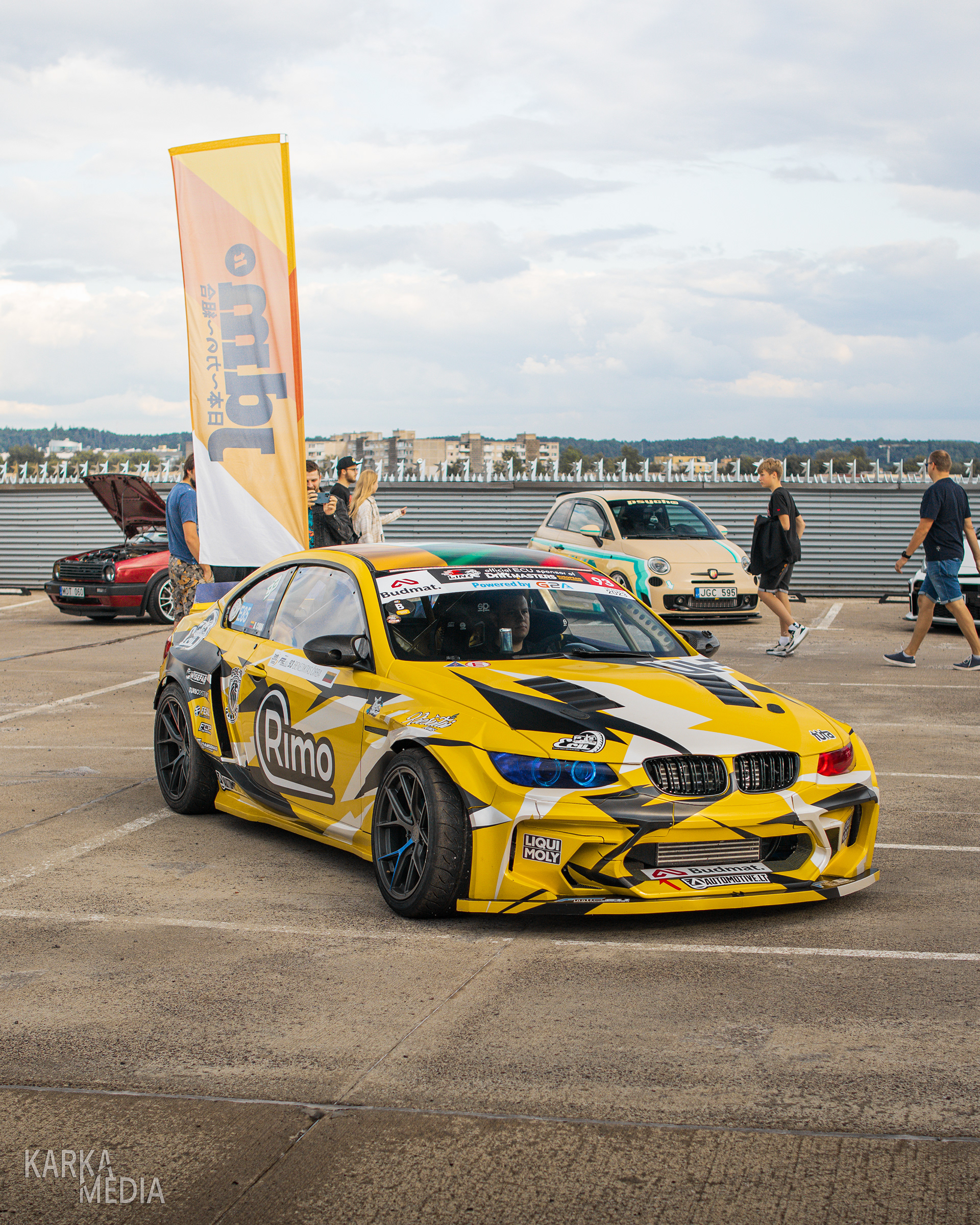 Photos captured during the JDM.LT "Gran Turismo" Premiere Meet on a shopping center rooftop