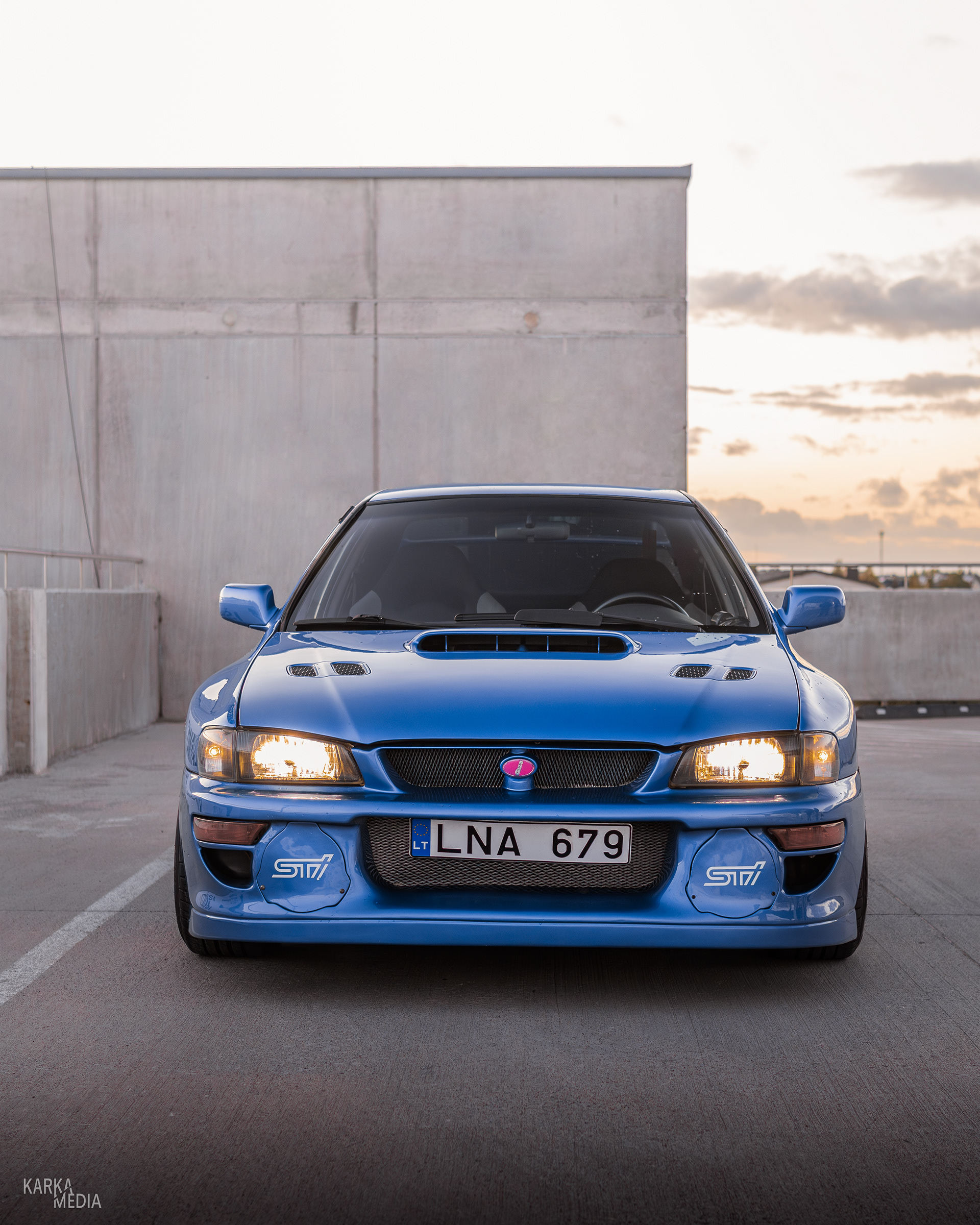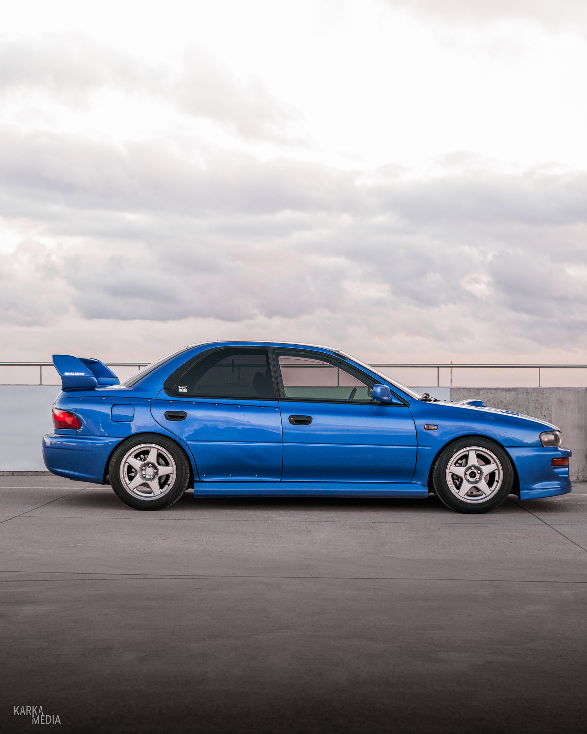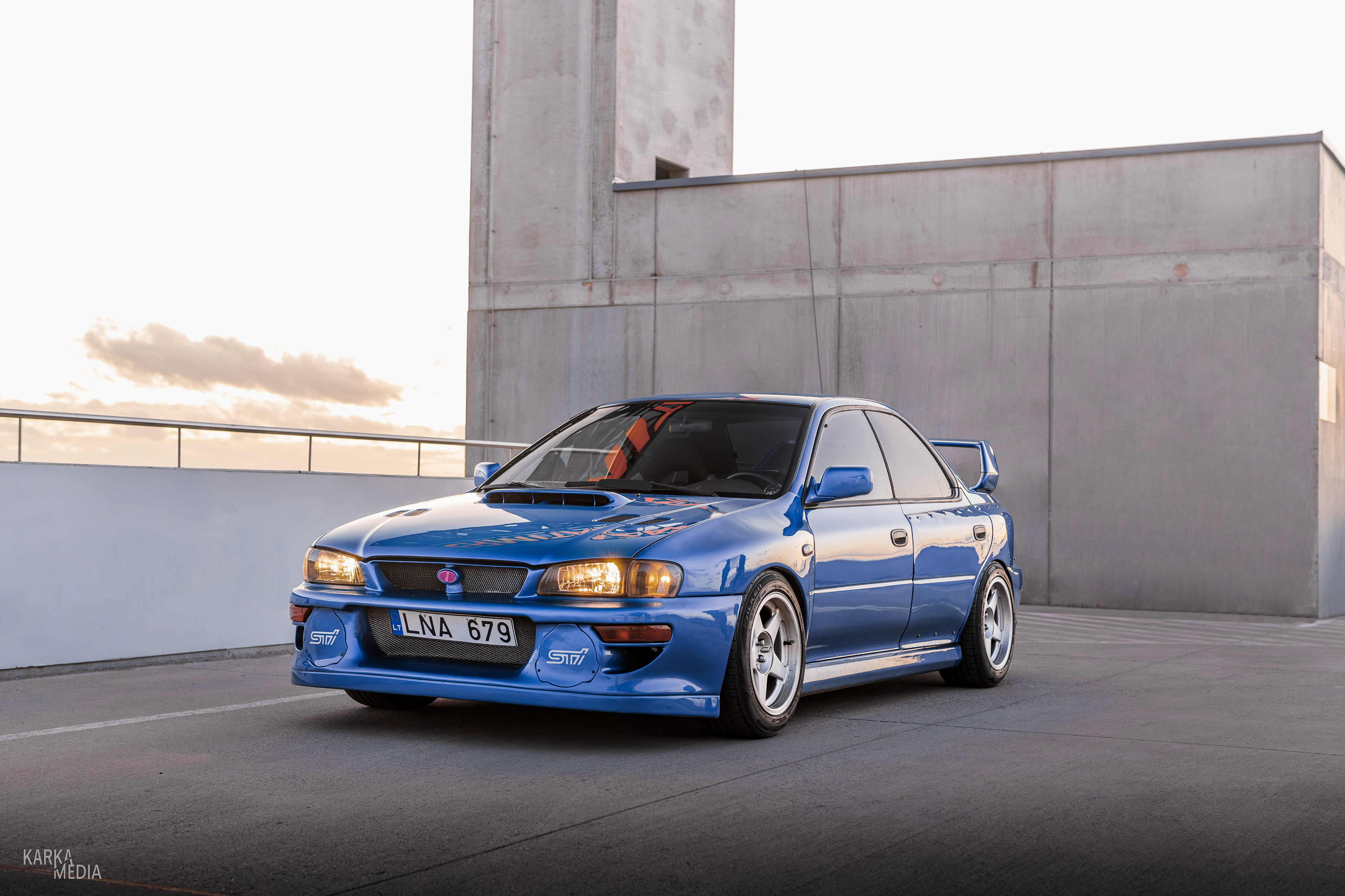 Rooftop photos of a tuned "meaneye" 1st generation Subaru Impreza