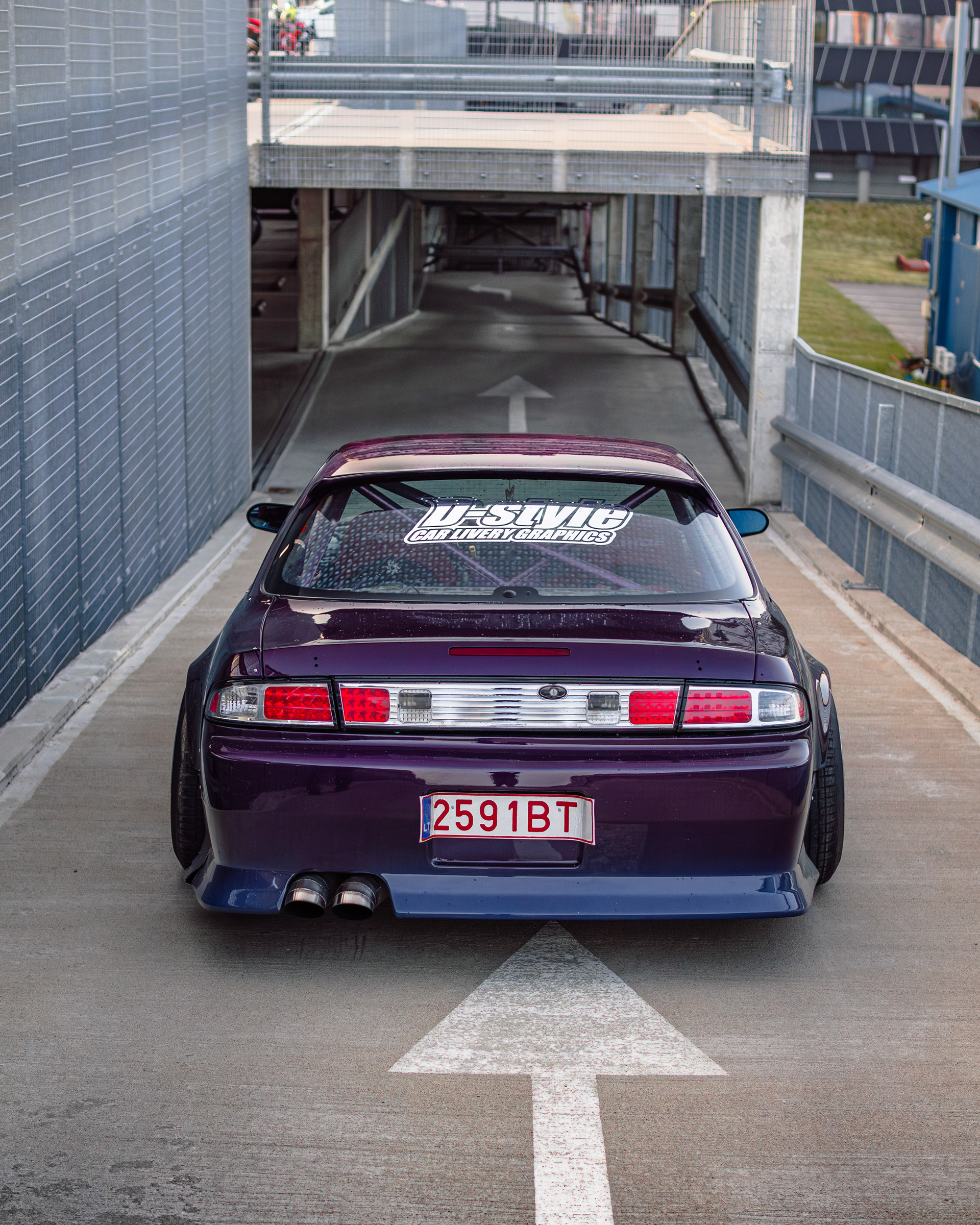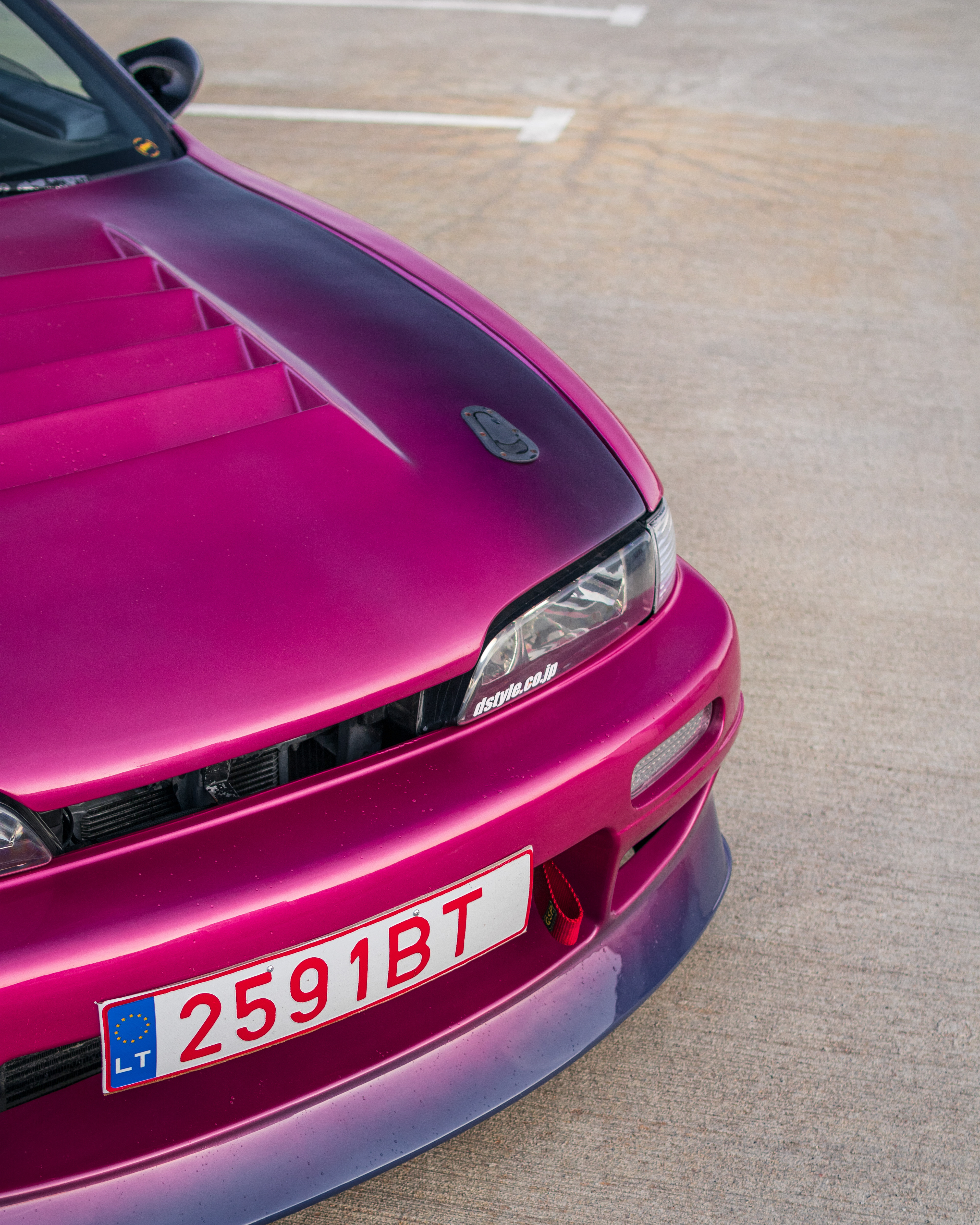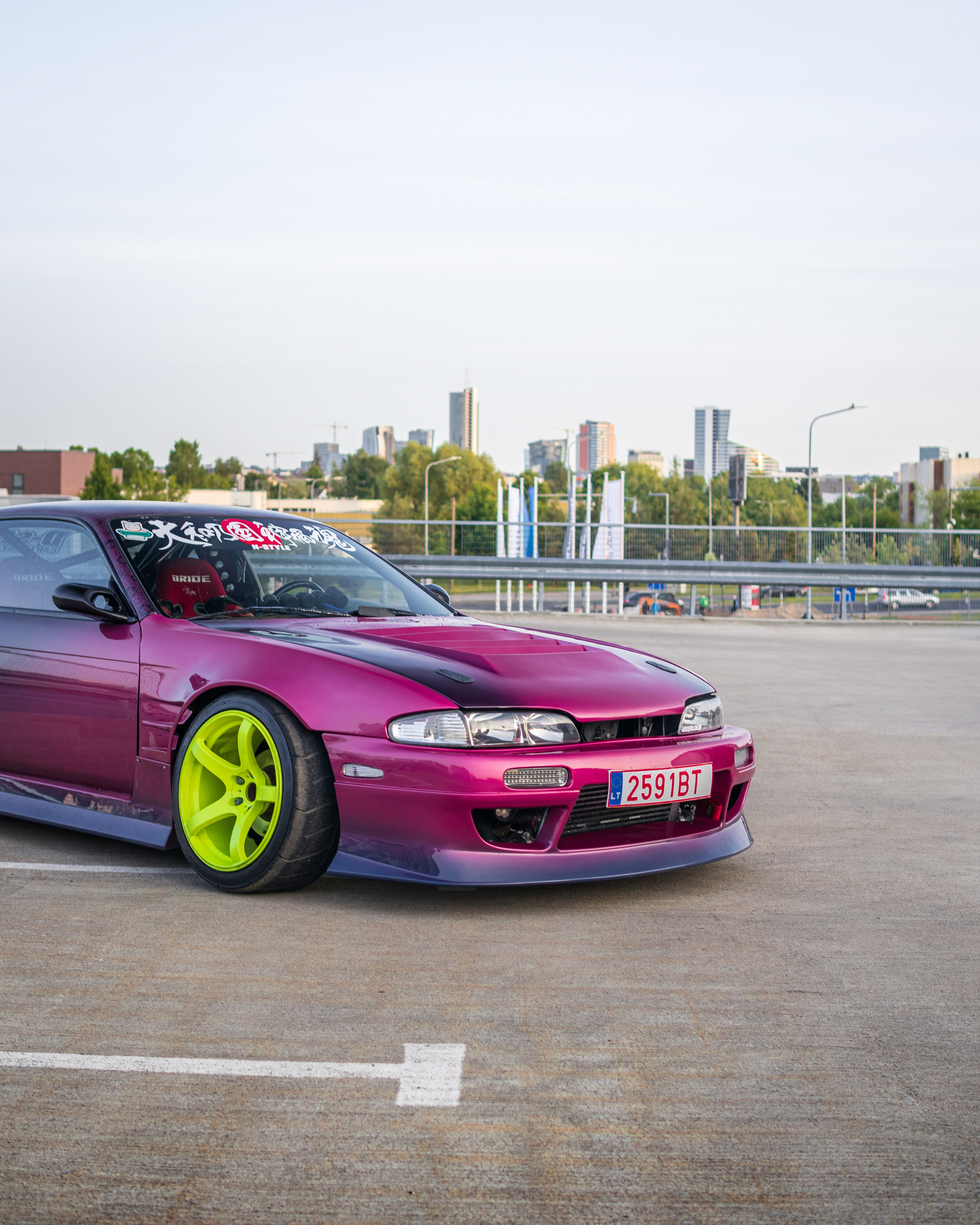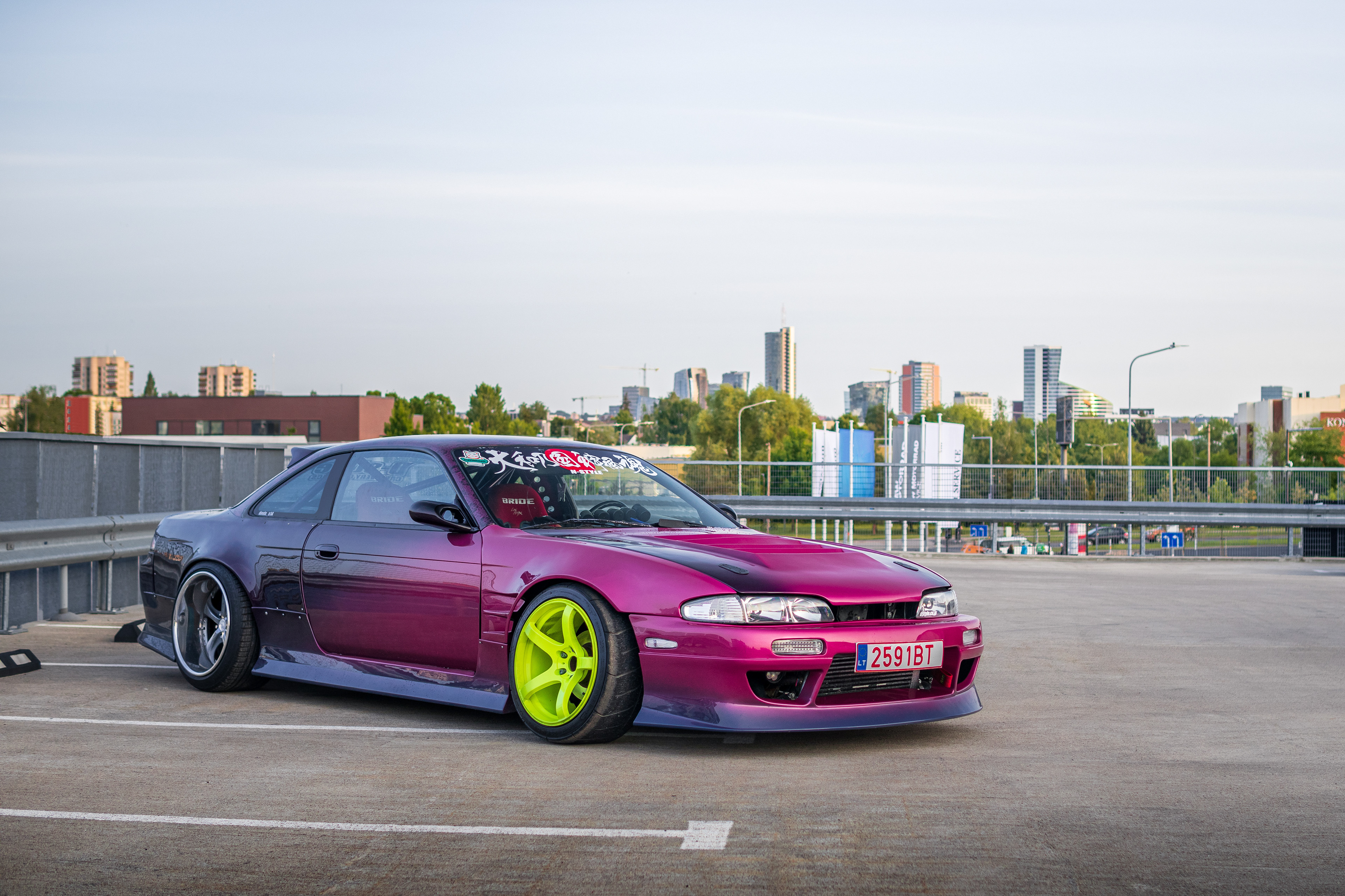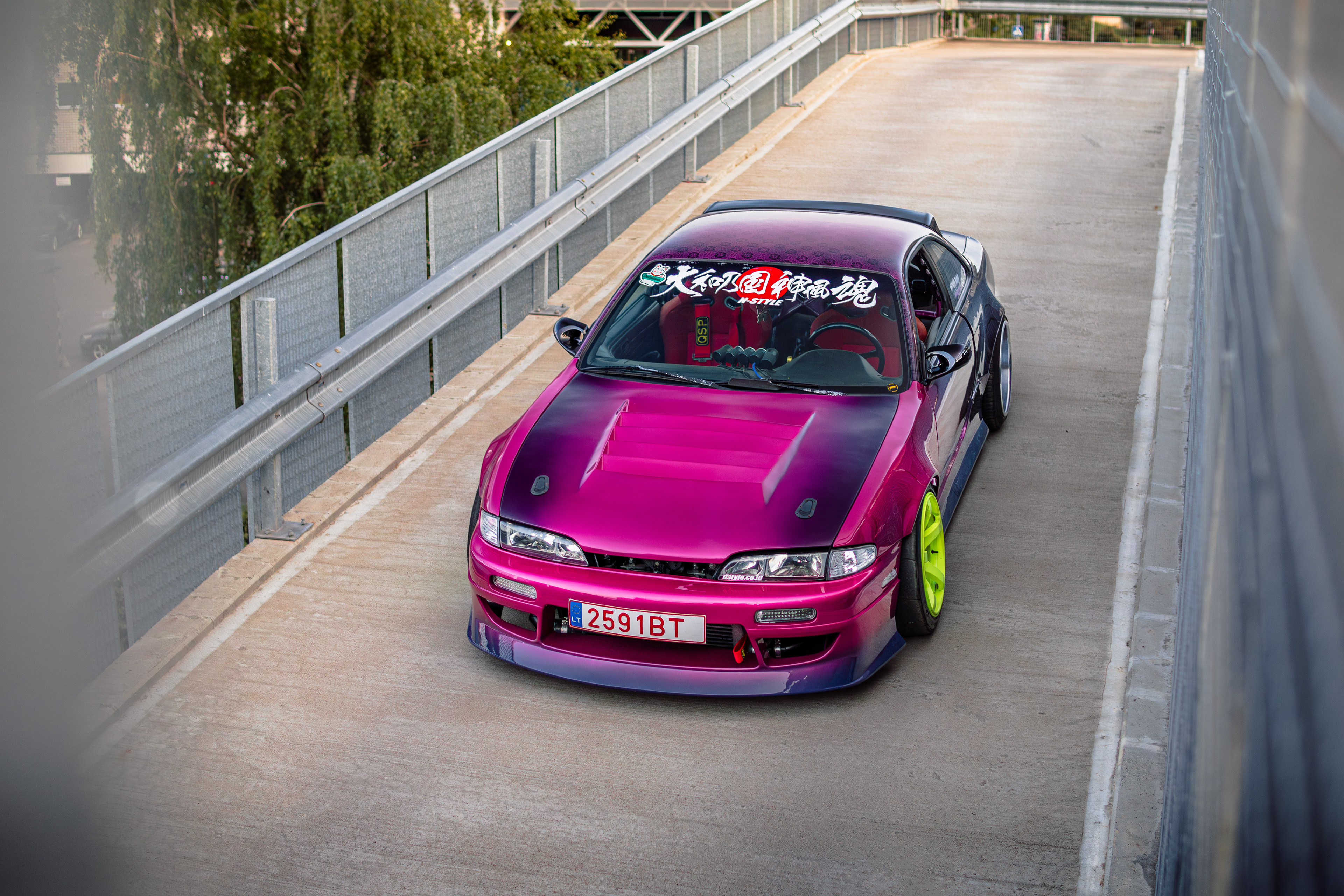 Rooftop photos of a triple-color Team Burst style Nissan S14 200SX
