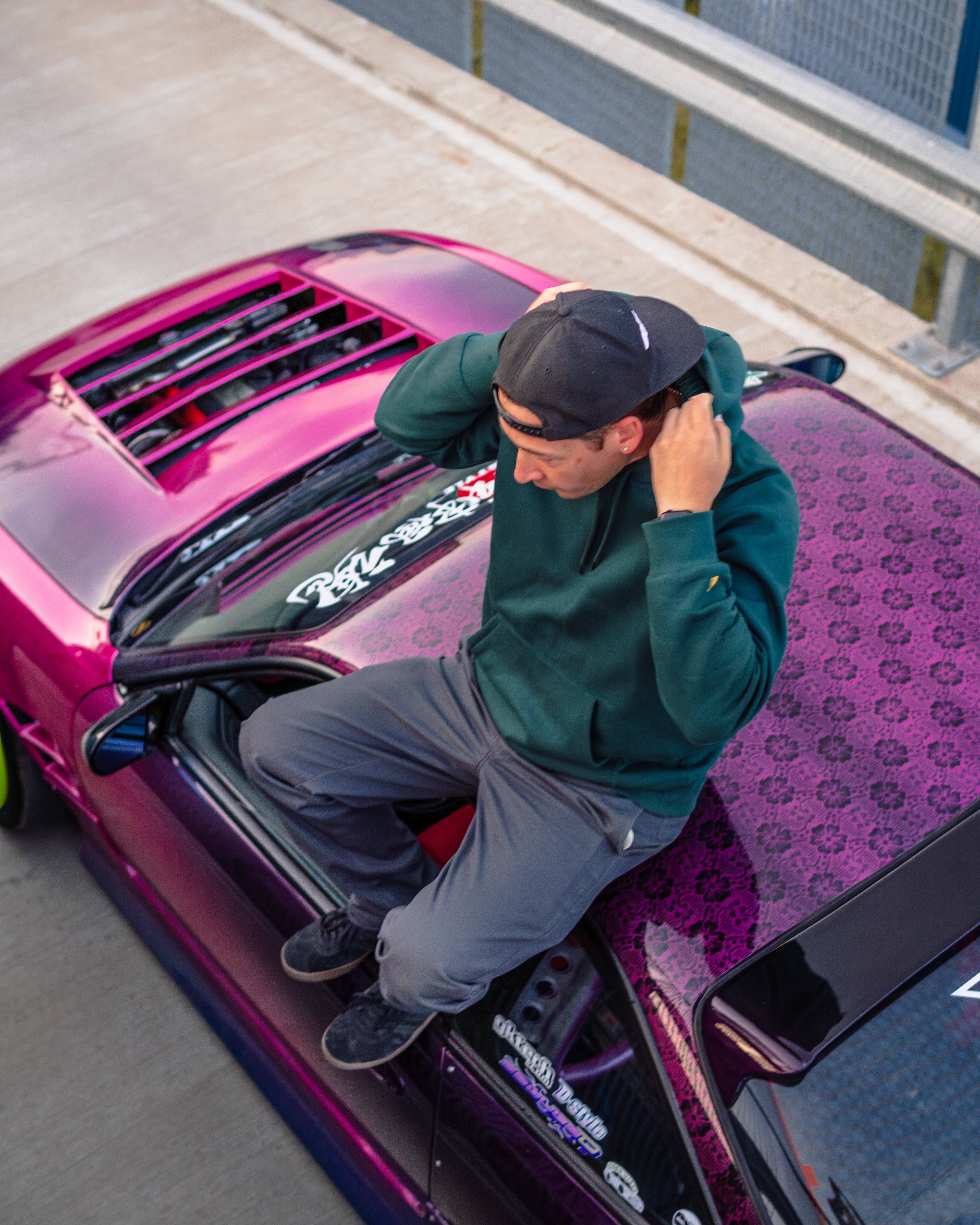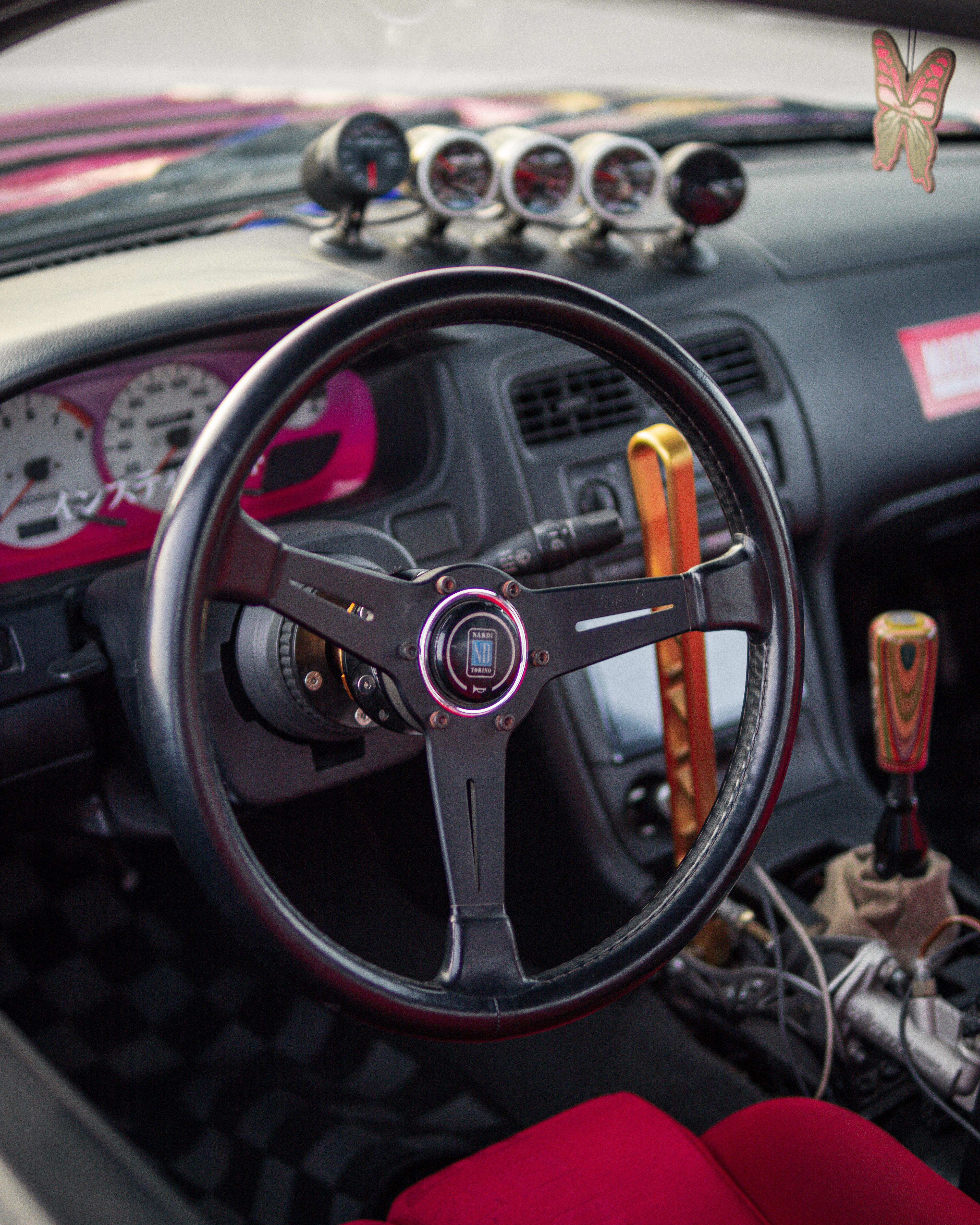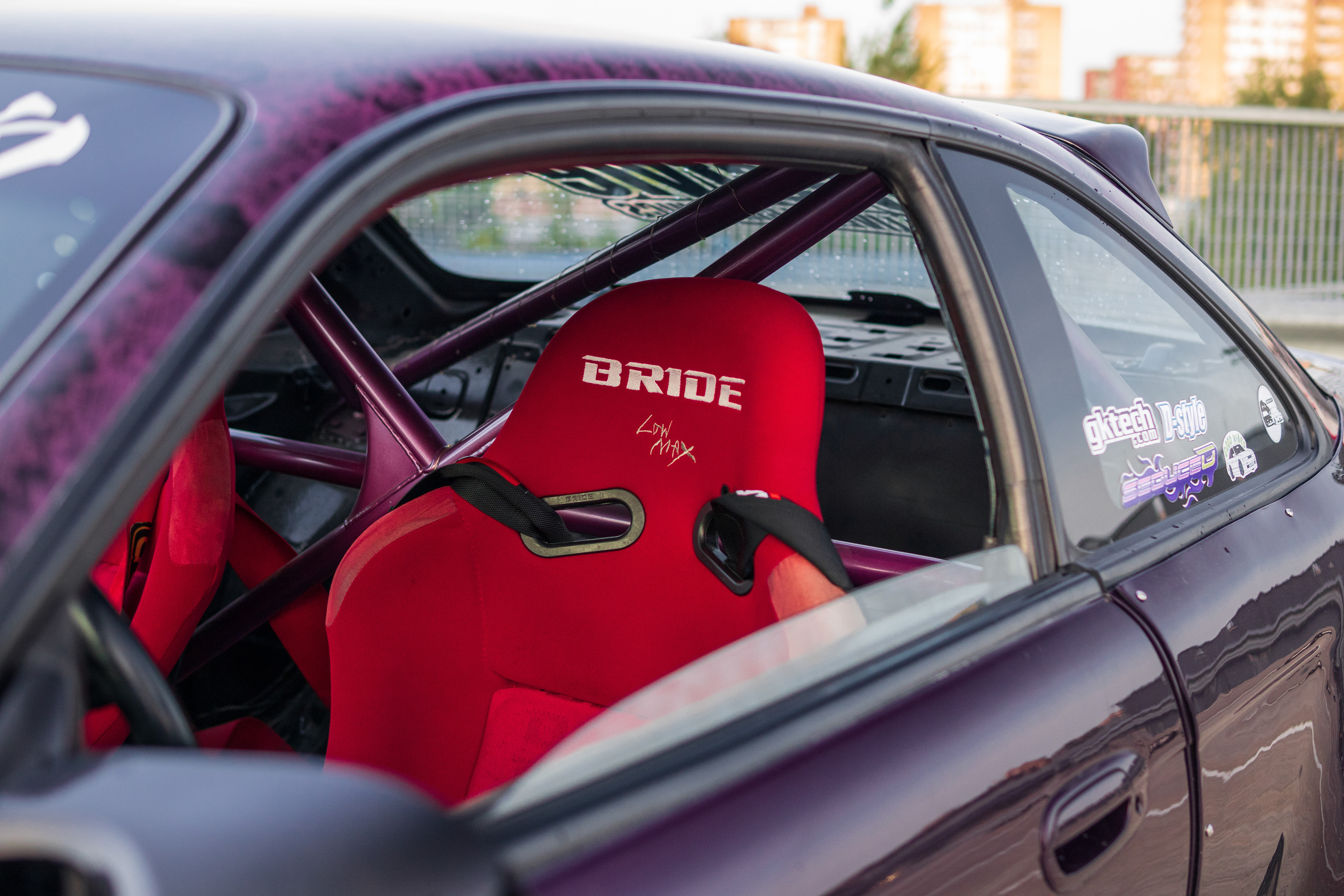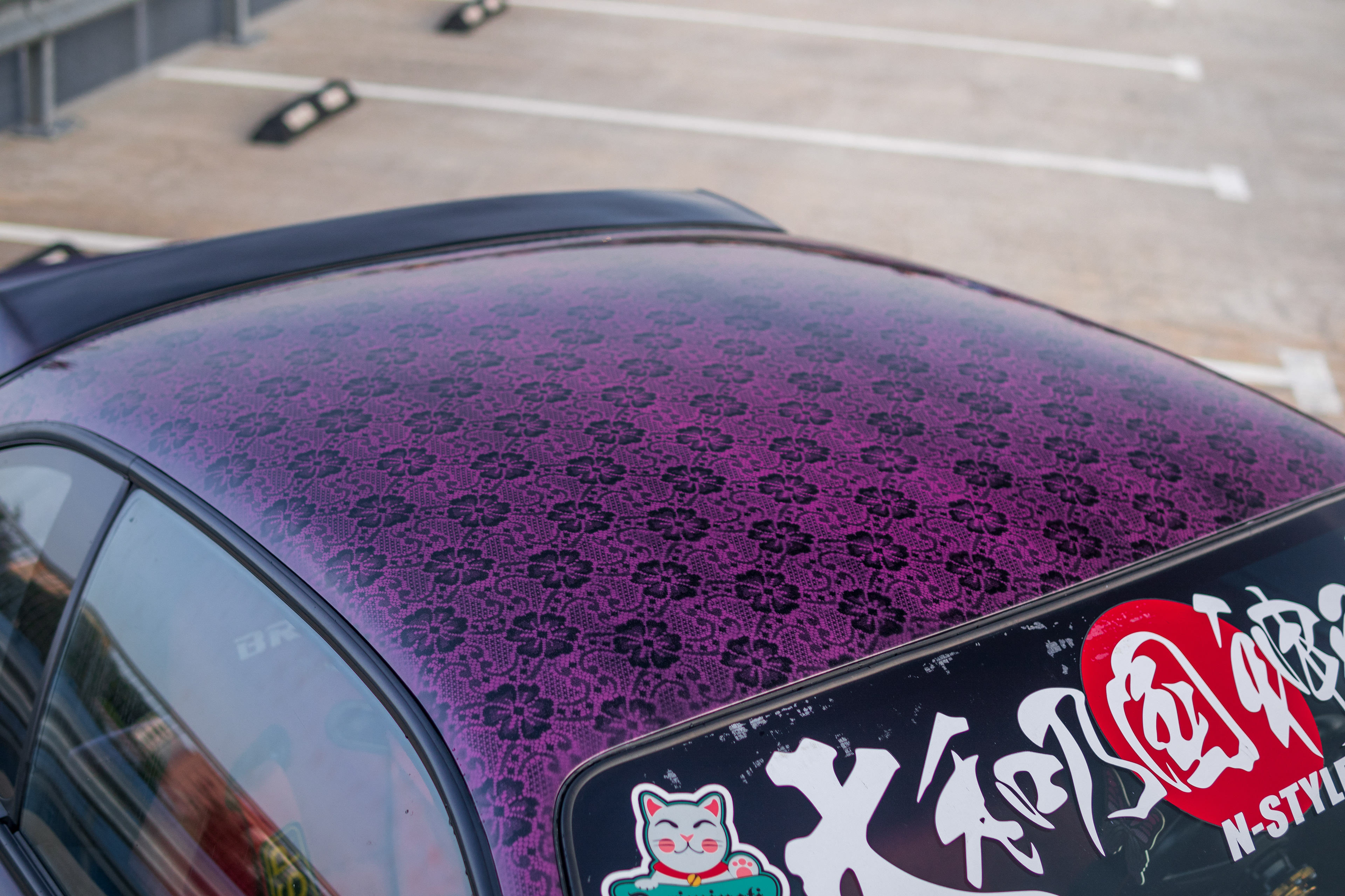 Rooftop photos of a triple-color Team Burst style Nissan S14 200SX